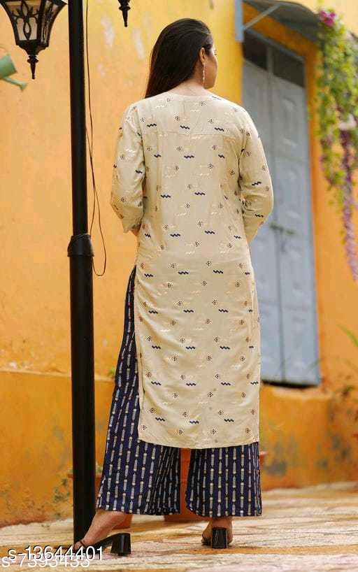Rayon Women's Kurti With Palazo Set Fabric - Rayon Size - M-38, L-40, XL-42, XXL-44 Kurti Length - 42 Inch Palazo Length - 39 Inch